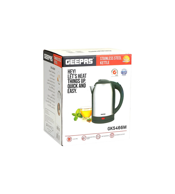 گنجایش کتری برقی ۱٫۸ لیتر و در دهانه خروجی آب یک فیلتر ضدرسوب طراحی شده که بهداشت سلامت را بهمراه دارد. این فیلتر به شکلی طراحی شده که میتوان آن را برای شستشو و تمیز کردن براحتی جداکرد. این محصول مجهز به چراغ نمایشگر می باشد که با کمک این چراغ میتوان از جوش آمدن آب آگاه شد. همچنین با کلیدی که بر روی دسته کتری طراحی شده پس از جوش آمدن آب کتری به طور اتومات خاموش میشود. اگر تمایل دارید آب به نقطه جوش نرسد و در دمای دلخواه آن را نگه دارید می توانید به طور دستی آن را خاموش کنید. کتری برقی جیپاس مدل GK5466 با داشتن صفحه گرد قادر به چرخش ۳۶۰درجه در هر جهات مختلف میباشد.
