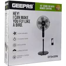 برند جیپاس GEEPAS یکی از عرضه کنندگان لوازم خانگی و برقی است که با بیش از 36 سال تجربه ، در اغلب قاره ها اعم از آسیا و اروپا و آمریکا از استقبال بسیار خوبی برخوردار بوده است.پنکه ایستاده جیپاس مدل GF9489N از انواع پنکه های ایستاده این شرکت است که کیفیت بسیار مناسبی دارد .از مزایای این پنکه دارا بودن حالت های متنوع عملکرد می باشد که مناسب برای زمان استراحت و در شب و یا در شرایط عادی بوده و با فشردن دکمه MODE با قراردادن در وضعیت استراحت در شب ، پنکه بطور خودکار، تغییراتی متناوب در سرعت ایجاد می کند یعنی در مدت چند ثانیه با سرعت بالا کار می کند و بعد از آن برای چند ثانیه سرعت بسیار کاهش پیدا می کند و این عملکرد بطور مکرر انجام می شود که سبب افزایش کیفیت خواب کاربر می شود . این دستگاه پنکه از تایمر با زمان بندی 0.5 تا 7.5 ساعت بهره می برد که نحوه تنظیم آن بسیار مبتکرانه از سوی تولید کننده طراحی شده است با یک بار فشردن دکمه تایمر LED مربوط به نیم ساعت روشن می شود و با فشردن بار دوم این زمان بعلاوه نیم ساعت شده و چراغ 1 ساعت روشن می شود و در فشردن برای سومین بار چراغ 1 ساعت و نیم ساعت روشن می شود و تایم روی 1.5 ساعت قرار می گیرد و به همین ترتیب تا 7.5 ساعت با فواصل نیم ساعته قابل تنظیم است.کلیه کارکردهای پنکه با ریموت آن قابل کنترل است . میله وسط از جنس استیل بوده و از استحکام بالایی برخوردار است و باعث می شود ارتفاع پنکه را بتوان با یک پیچ در پشت آن به 133 سانتیمتر رساند .