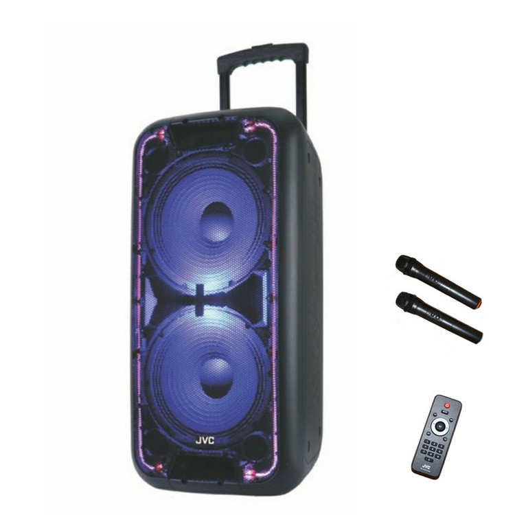 جیویسی یک شرکت هلدینگ ژاپنی میباشد که در زمینهٔ تولید لوازم صوتی مانند پخش خودرو (تحت هر دو برند) و لوازم خانگی و لوازم الکترونیکی و محصولات و خدمات وابسته به آن فعالیت میکند. اسپیکر بلوتوثی قابل حمل مدل N518 JVC با درگاه های اتصال بلوتوث , میکروفون و AUX به همراه درگاه های مخصوص اتصال میکروفون اضافه و ورودی صدای گیتار با کیفیت صدا و قدرت بسیار عالی میتواند تمام نیاز های صوتی شما را برطرف نماید.داشتن باطری داخلی با توان بالا و درگاه مخصوص اتصال به باطری خودرو به شما کمک میکند تا بتوانید از کالای خود در همه مکان ها استفاده کنید. داشتن چرخ و دسته حمل به شما کمک میکند تا به راحتی بتوانید اسپیکر را حمل کنید. به همراه بسته بندی محصول 2 عدد میکروفون بی سیم , کابل AUX , کابل اتصال به برق شهری جهت شارژ باطری , کابل اتصال به برق خودرو و کنترل از راه دور وجود دارد. از قابلیت های دیگر این مدل داشتن رادیو Fm به همراه انتن خارجی, داشتن درگاه SD , و قابلیت ضبط صدای میکروفون بر روی SD است. داشتن فانکشن های متعدد به شما کمک میکند تا بهترین تنظیمات خروجی صدای مورد نظر خود را داشته باشید. شما با داشتن 2 عدد از این مدل اسپیکر میتوانید از طریق بلوتوث و به صورت بی سیم آن ها را به یکدیگر متصل کنید و همزمان از هر دو اسپیکر خروجی داشته باشید.