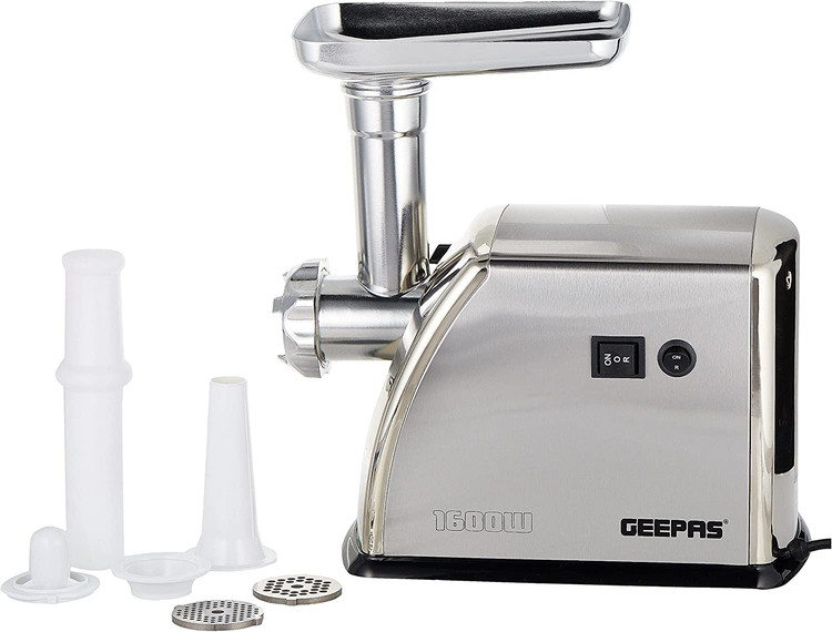 چرخ گوشت استیل ضد زنگ Geepas دارای حداکثر توان 1600 وات است. گوشت را سریعتر و کارآمدتر از دستی آسیاب می کند.