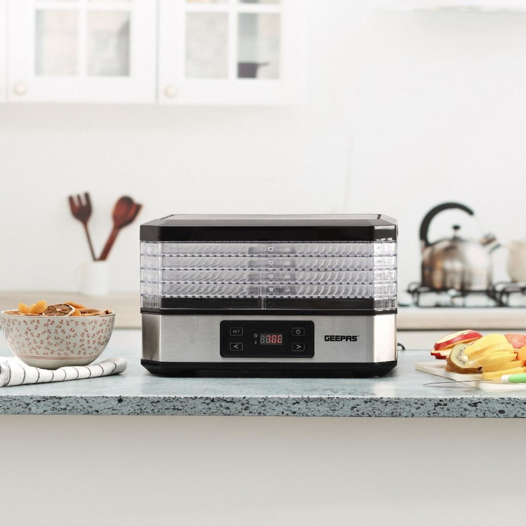 دستگاه خشک کن جی پاس دارای ۵ طبقه برای خشک کردن است. شما عزیزان میتوانید انواع خوراکی ها را در سطوح مختلف قرار داده و استفاده نمایید.دستگاه مجهز به تایمر ۴۸ ساعته می باشد. با این قابلیت شما عزیزان از یک ساعت تا ۴۸ ساعت قابلیت تنظیم تایمر آن را دارید.