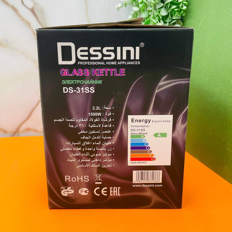 کتری برقی دسینی مدل 31ss با ظرفیت 2.5 لیتر گزینه مناسب و بسیار شیک در هر خانه و آشپزخانه می باشد ، بدنه ی کتری برقی بصورت دو جداره استیل می باشد ، همچنین دارای صافی دهانه کتری و چراغ نشانگر می باشد