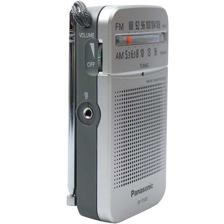 رادیو جیبی AM/FM با روکش نقره ای برای رویدادهای ورزشی ، سفرهای ماهیگیری ، و سایر کاربردهای در حال حرکت بسیار مناسب است . صفحه کلید اسلاید راحت در کنار این دستگاه امکان تنظیم سریع و با یک انگشت را فراهم می کند . همچنین این دستگاه دارای بند دستی برای حمل آسان آن است . این دستگاه دارای دو ال ای دی (LED) میباشد هنگامی که دریافت قوی است ، نشانگر تنظیم ال ای دی (LED) اول روشن می شود. نشانگر ال ای دی (LED) دوم سطح باتری را نشان می دهد. رادیو پاناسونیک مدل RF-P50D جیبی میباشد همچنین این رادیو دارای (هدفون ، خروجی هدفون ، بند مچی) میباشد . امواج دریافتی این رادیو از (AM - FM) است و این رادیو با باتری داخل خود ندارد و با 2 عدد باتری قلمی کار میکند . رادیو پاناسونیک مدل RF-P50D دارای بلندگوی 2.25 اینچی است که صدا را بسیار شفاف و پویا ارائه میدهد و همچنین این دستگاه دارای جک هدفون است که به شما امکان گوش دادن بصورت خصوصی را میدهد