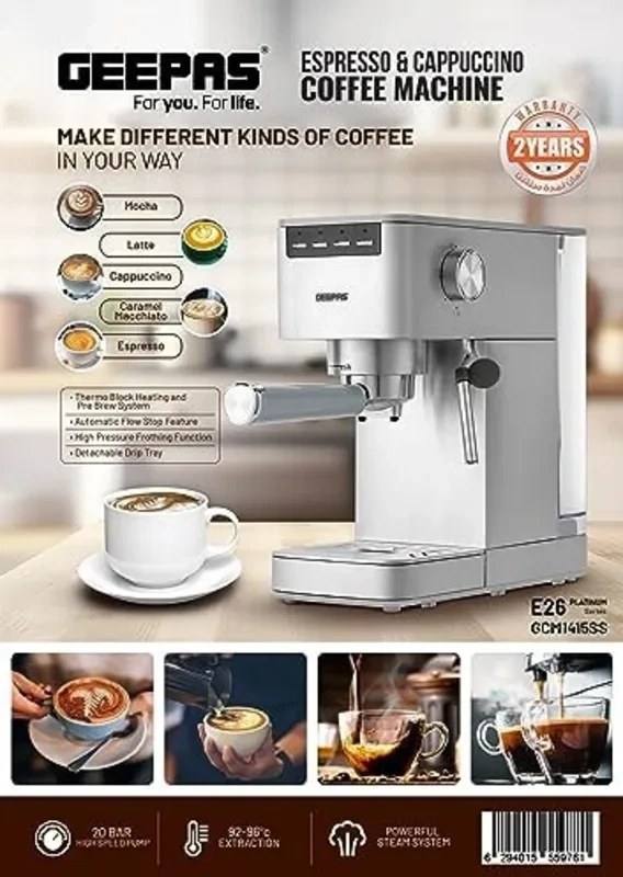 اسپرسو ساز جیپاس مدل GCM1415 ظرفیت ۱.۴ لیتر با فیلتر استیل